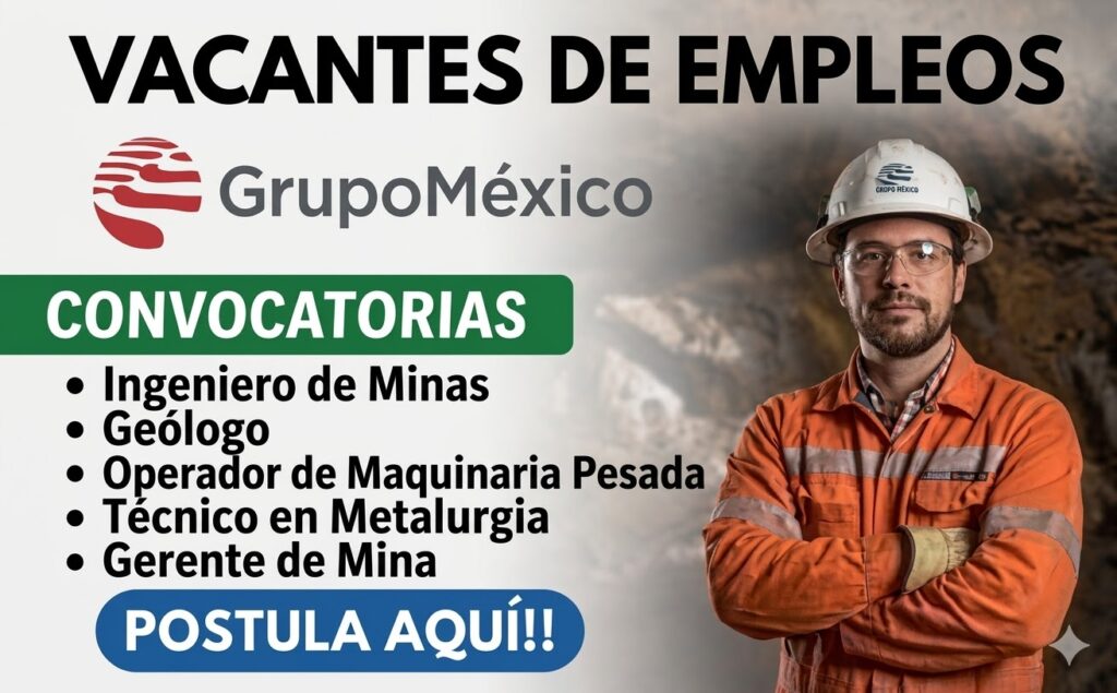 La convocatoria de empleos GRUPO MÉXICO 2025 ofrece vacantes con estabilidad, beneficios y crecimiento profesional. Descubre las oportunidades y postúlate hoy. 🌟⚒️